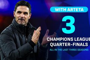 蛻變!阿森納隊史第二次連續三年進歐冠8強,此前13年0次晉級