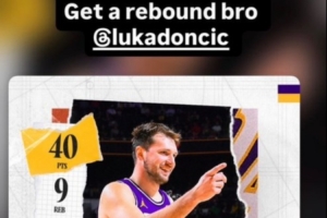 賽后,隊友拉拉維亞轉發了東契奇本場數據海報,并且寫道:“兄弟,再搶個籃板吧。”