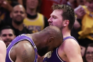 談到本場隊友東契奇拿下40分準三雙以及連進關鍵球,詹姆斯說:“他整個賽季都是這么為我們打球的。過去一年里他都處于極佳的節奏之中,自從賽季開始就是如此。我們就是努力支持他,在防線后方支援他,當他突破時做好準備,做好接球就投的準備,積極從后方空切。不過,他自己打進了多記關鍵球,那記左側翼的后撤步三分真是關鍵,太強了。”