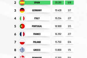 體育資訊3月20日訊 歐戰(zhàn)1/8決賽戰(zhàn)罷,媒體列出了本賽季各聯(lián)賽歐戰(zhàn)積分排名,英超24.791分居首,只需要一場平局就能鎖定額外歐冠席位,西甲20.281分次席,6支球隊晉級歐戰(zhàn)8強形勢大好。