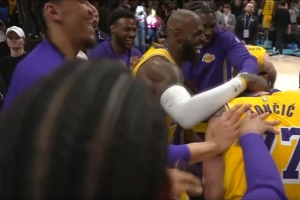 GIF-湖人全隊為東契奇慶賀