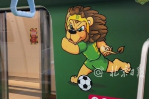 除主題車站外,北京地鐵還在3號線打造了一列國安球員主題列車。車廂以綠色為主色調,車頂裝飾有國安隊徽,腳下的地面也變成了綠茵場,車廂內隨處可見國安球員的頭像和球隊吉祥物“京獅”。此外,座椅還特別印制了國安球員的球衣號碼,乘客可以對照號碼,尋找自己心儀球員的“專屬座位”。