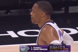 他2016-2017賽季,曾在雷霆單賽季命中200記三分,排在生涯之首
