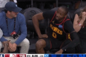 GIF-庫明加坐在觀眾席休息 等隊(duì)友過來拉才起身
