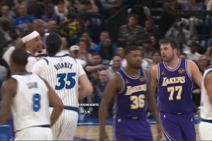 比賽第三節,湖人當家球星盧卡·東契奇和魔術中鋒戈加·比塔澤發生口角,最后雙方均被裁判吹罰技犯。