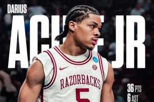 體育資訊3月22日訊 NCAA瘋?cè)?2強賽,阿肯色大學94-88險勝海波特大學,晉級甜蜜16強。