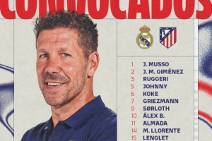 體育資訊3月22日訊 北京時間3月23日凌晨4:00,2025-26賽季西甲聯賽第29輪焦點戰,馬競將客戰皇馬。賽前,馬競官方公布球隊本場比賽大名單,瑟爾洛特、阿爾瓦雷斯領銜鋒線。