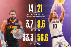 文森特出場14次,場均3.7分,投籃命中率33.3%,三分25%,罰球100%(湖人時期,場均4.8分,命中率34.6%,三分36.9%)。