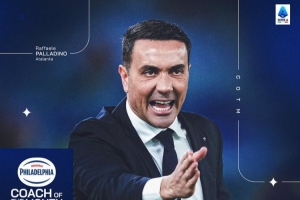 帕拉迪諾2月份帶領(lǐng)亞特蘭大參加4場(chǎng)意甲比賽,戰(zhàn)績(jī)3勝1平,意甲官方社媒曬出海報(bào),確認(rèn)他當(dāng)選2月份最佳教練。