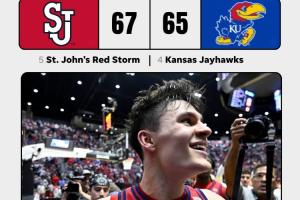 體育資訊03月23日訊 NCAA瘋?cè)\標賽32進16,圣約翰大學(xué)依靠后衛(wèi)迪倫·達林最后時刻的上籃逆轉(zhuǎn)以67-65絕殺狀元熱門達林·彼得森所在的四號種子堪薩斯大學(xué),這是他們自1999年以來首次挺進甜蜜十六強。