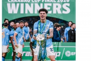 曼城官方社媒曬出奧賴利捧杯的照片,配文:“周六慶祝自己的21歲生日,周日為兒時的俱樂部將溫布利染成藍色,奧賴利的完美周末。”