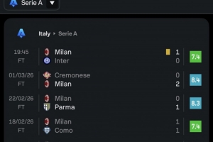 體育資訊3月9日訊 意甲第28輪比賽,莫德里奇踢滿全場,幫助米蘭1-0擊敗國米。