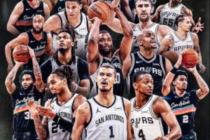 賽后,馬刺官方也曬出了全陣容的海報,并寫道:“??2026年西南賽區冠軍??。”