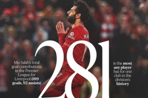 薩拉赫42場英超比賽傳射,英超歷史最多