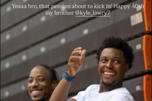 國(guó)王后衛(wèi)、洛瑞前猛龍隊(duì)友德羅贊更新了個(gè)人Ins快拍祝賀洛瑞生日快樂(lè),并配文:耶,兄弟!你的養(yǎng)老金馬上就要開(kāi)始發(fā)放了!生日快樂(lè)!