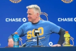 勇士回到主場迎戰籃網,科爾賽前穿著600勝的紀念T恤接受采訪,小吧整理了他的部分采訪內容,具體如下:
