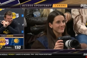 東契奇:“攝影師凱特琳·克拉克?那個WNBA球員?抱歉,我沒看到她在拍照。”