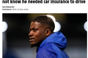 切爾西舊將不知開車要投保且再次無證駕駛,法官斥責:你該長大了