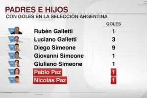 據(jù)ESPN統(tǒng)計(jì),巴勃羅·帕斯和尼科·帕斯成為第三對為阿根廷國家隊(duì)破門的父子,此前加萊蒂父子、西蒙尼父子做到這點(diǎn)。