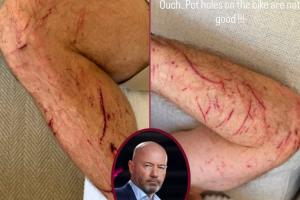 希勒寫道:“自行車道上的坑洼真糟糕。”圖中希勒的手臂和腿部有多處割傷和擦傷。