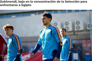 馬丁·蘇維門迪因右膝不適退出西班牙國家隊集訓。為避免任何風險并保障球員健康,他已被移出球隊下一場對陣埃及的名單。阿森納足球俱樂部醫療團隊已獲悉此事。