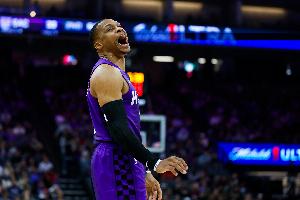 此役,威斯布魯克出戰34分43秒,17中7,其中三分5中3,罰球6中6,得到23分11籃板12助攻1搶斷,沒有失誤,正負值+10。