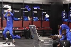 體育資訊3月31日訊 今日,法國足球國家隊官方發布了一個皇馬球星姆巴佩在更衣室里“投籃”的視頻。