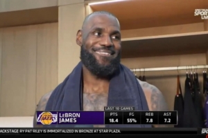 體育資訊3月31日訊 NBA常規賽,湖人隊120-101戰勝奇才隊。賽后,詹姆斯接受了采訪。以下為完整版。