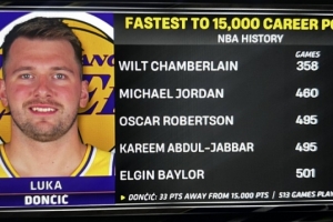 現場給出統計,東契奇距離15000分只差33分,今天是他生涯的第513場比賽。