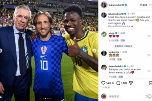 體育資訊4月2日訊 克羅地亞在友誼賽中1-3不敵巴西,莫德里奇社媒曬出與安切洛蒂、前隊(duì)友的合照。
