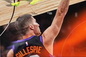 第二節比賽,吉萊斯皮再中三分,本場已命中2記三分,目前總數227記,超越昆汀·理查德森創造太陽隊史單賽季三分命中數新紀錄!