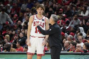 首節(jié)比賽,公牛首發(fā)表現(xiàn)十分糟糕,五人合計(jì)投籃10中0沒有進(jìn)入入賬,僅布澤利斯和特雷·瓊斯兩人通過罰球共拿到2分。