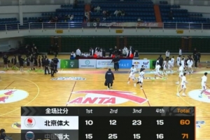 末節(jié)爭奪,尹俐驕先中三分,符鈺皙打成2+1,李依坤和張榮荷相繼飆中三分強(qiáng)勢(shì)回應(yīng),王珂心搶斷反擊,中國海大穩(wěn)扎穩(wěn)打牢牢占據(jù)場上主動(dòng),符鈺皙強(qiáng)攻再中,無奈時(shí)間不多。最終,中國海大71-60擊敗北體大。