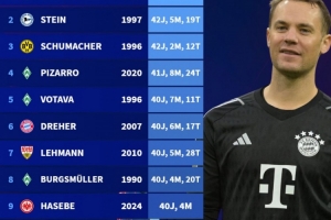 體育資訊4月4日訊 拜仁客戰(zhàn)弗賴堡的比賽正在進(jìn)行當(dāng)中,諾伊爾首發(fā)出戰(zhàn),憑借本場(chǎng)比賽,他正式進(jìn)入德甲聯(lián)賽“40歲俱樂部”。