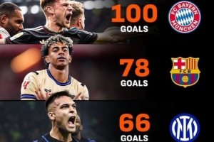 體育資訊4月5日訊 拜仁在本輪德甲讓二追三,3-2逆轉(zhuǎn)絕殺弗賴堡,本賽季28輪德甲已狂轟100球,同期領(lǐng)跑五大聯(lián)賽。