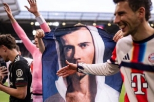 貼臉開大!拜仁眾將賽后慶祝時舉著格雷茨卡的性感身材海報