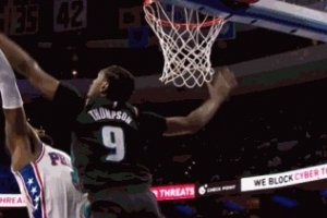 GIF-奧薩爾帽翻喬治犯規 活塞挑戰成功