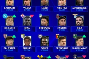 德轉意甲各隊身價最高球員:國米勞塔羅,尤文伊爾迪茲,米蘭萊奧