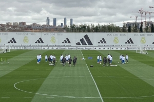 據記者Mario Cortegana報道,米利唐、阿拉巴、卡雷拉斯、塞巴略斯、貝林厄姆、姆巴佩、羅德里戈因傷缺席皇馬訓練,空中出現無人機,以幫助皇馬收集訓練數據。