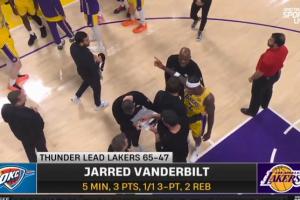 湖人ESPN隊記Dave McMenamin報道,湖人主教練雷迪克第二節剛開始就叫暫停,將范德彪換下場,后者情緒激動與教練發生口角。里夫斯和助理教練介入阻隔雙方。隨后克內克特將范德彪換下。