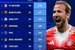體育資訊4月8日訊 在歐冠淘汰賽首回合,拜仁2-1擊敗皇馬。德轉盤點了本賽季目前五大聯賽球隊在各項賽事總進球榜,其中拜仁遙遙領先,具體如下: