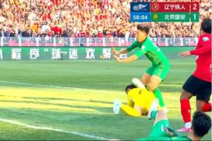 中超聯賽第4輪,遼寧鐵人楠波灣VS北京國安。比賽第58分鐘,北京國安進球。裁判員在球進入球門前鳴哨停止比賽,并判北京國安37號隊員在之前的爭搶時對對方守門員犯規,進球無效,由遼寧鐵人踢直接任意球恢復比賽。VAR未介入。