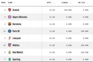 體育資訊04月08日訊 歐冠1/4決賽首回合結(jié)束了兩場較量,皇馬主場1-2不敵拜仁,阿森納客場1-0戰(zhàn)勝葡體。Opta超算更新了最新的歐冠奪冠概率。