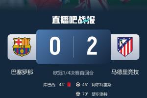 體育資訊04月09日訊 歐冠1/4決賽首回合結束,巴薩0-2馬競,皇馬則1-2拜仁。