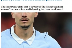 耐克在給《衛(wèi)報(bào)》的一份聲明中承認(rèn)了球衣肩部設(shè)計(jì)問題,并表示正在研究可能的解決方案:“在最近的國際比賽期間,我們注意到我們的國家隊(duì)球衣在肩縫處存在一個(gè)小問題。雖然不影響球衣性能,但整體外觀沒有達(dá)到應(yīng)有的標(biāo)準(zhǔn)。”
