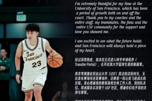 趙維倫發文寫道:“經過深思熟慮,我決定正式進入轉學申請程序(Transfer Portal),去開啟我大學籃球生涯的新篇章。我非常感激在舊金山大學(USF)度過的這段時光,無論是在賽場內還是賽場外,這都是一段讓我飛速成長的歷程,衷心感謝我的教練組和全體工作人員、我的隊友們、球迷朋友以及整個USF社區,感謝你們給予我的支持和厚愛。