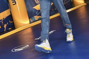 “他應(yīng)該是從球鞋珍藏柜里拿出來(lái)的吧,”詹姆斯笑著說(shuō),“我記得他穿過(guò)那雙,我不知道是不是他的新秀年。他是哪一年進(jìn)聯(lián)盟的,10-11年嗎?好吧,是09-10年,所以那是詹姆斯10代吧,我記得他以前在比賽中穿過(guò)那雙,我不確定他是不是有一雙額外的,這雙可能就是那雙,他應(yīng)該是從球鞋珍藏柜里拿出來(lái)的吧?!?/p>