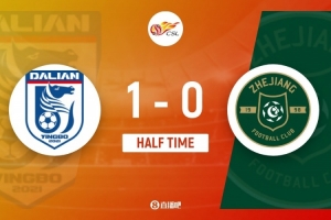 體育資訊4月10日訊 中超第5輪,大連英博主場對戰浙江隊,半場結束英博1-0領先。