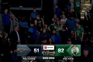 體育資訊4月11日訊 NBA常規賽,凱爾特人半場82-51領先鵜鶘。