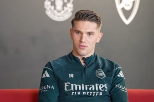記者:球迷們?nèi)绱似诖悖且驗(yàn)榇蠹蚁嘈牛氵@位前鋒能帶領(lǐng)球隊(duì)再上一層樓。阿森納已經(jīng)連續(xù)三個(gè)賽季聯(lián)賽亞軍,你加盟時(shí),是不是也立志帶隊(duì)沖擊冠軍、實(shí)現(xiàn)突破?